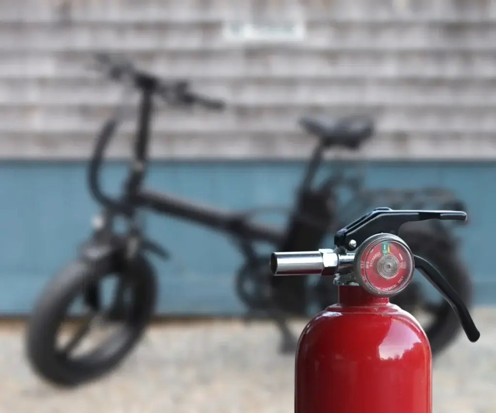 As a rider, you should know how to avoid e-bike battery fires. Firstly, if it happens while charging, unplug the charger. Secondly, move it away from flammable material and do not attempt to touch or puncture the battery even when bulging. Lastly, get out and call emergency fire in case the Class D fire extinguisher cannot contain the fire.